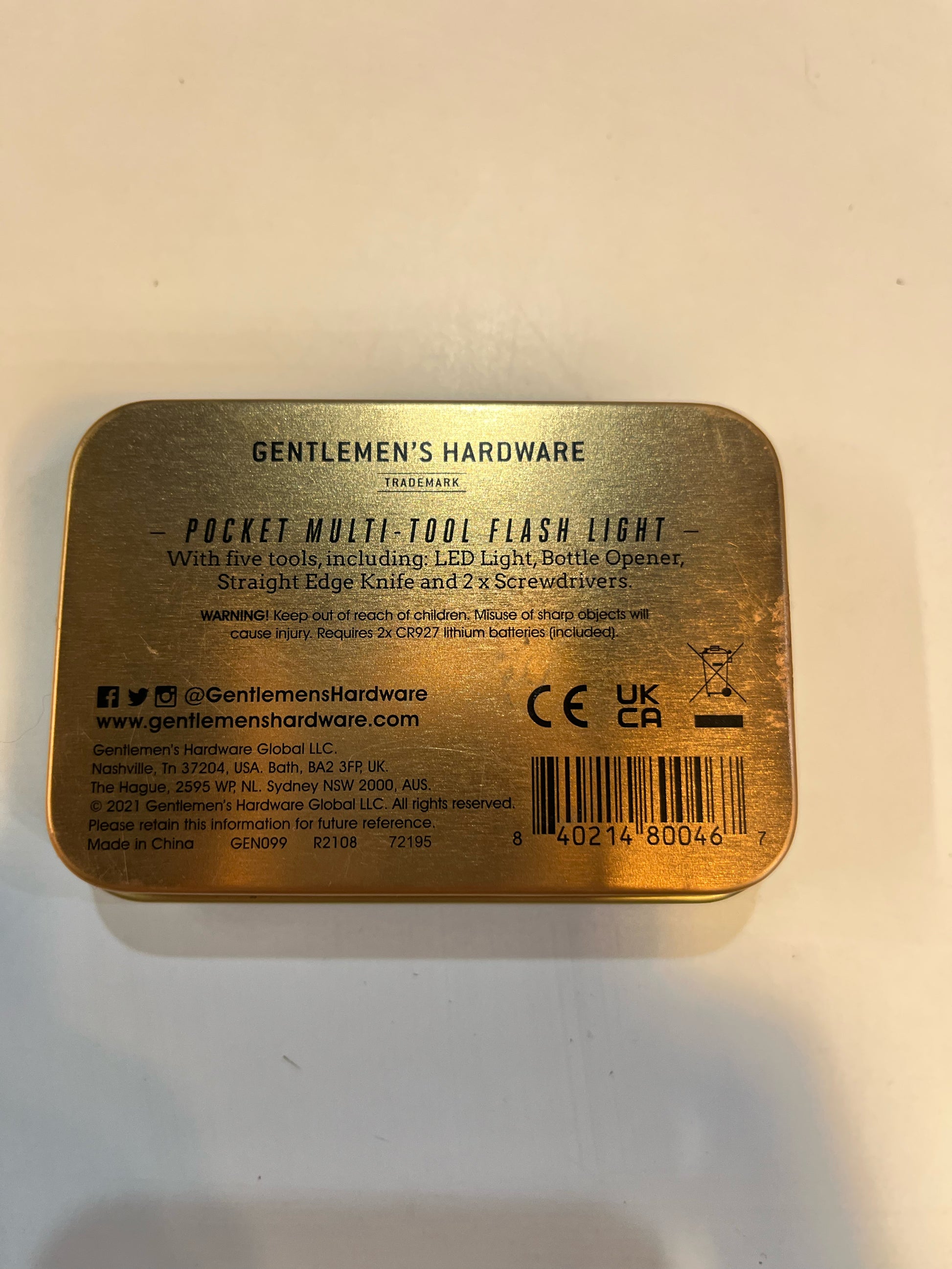 Gentlemen's Hardware Multi Tool Flashlight: LED Light, Bottle Opener, Straight Edge Knife, & 2 x Screwdrivers